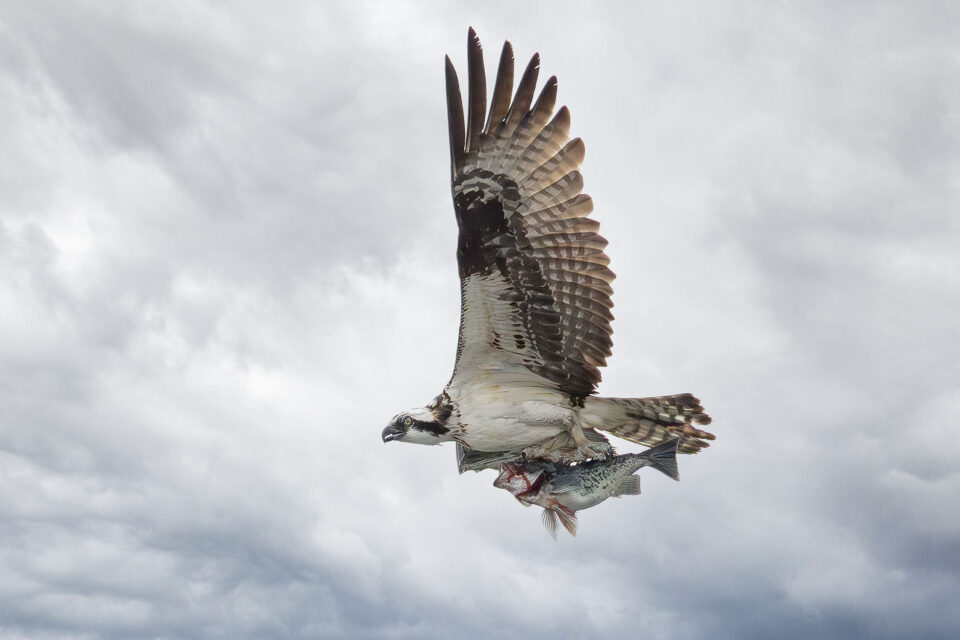 Ospreys fish in the ocean and in rivers for fish. Their other name is Sea Hawks. Yep, the Seattle Seahawks are named after an Osprey...I presume! Ron Bolander was out with his camera and he was ready when this Osprey flew by with its catch.