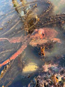 Ethan Artunian wrote, “My kids and I were lucky enough to see this rare sighting on [a week ago} Monday at Bowling Ball beach. Here are a couple of photos and a video. Good enough to make it in Jeanne's column?” You bet, and her blog! The Artunians were gifted with a sighting of a Ruby Octopus, Octopus rubescens.